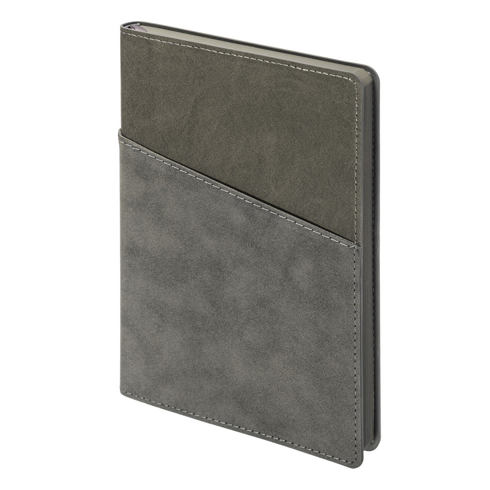 Ежедневник в гибкой обложке, с двумя карманами на лицевой и обратной стороне обложки. Карманы предназначены для хранения записок, визиток или ручки, также в карман можно положить мобильный телефон небольшого размера.