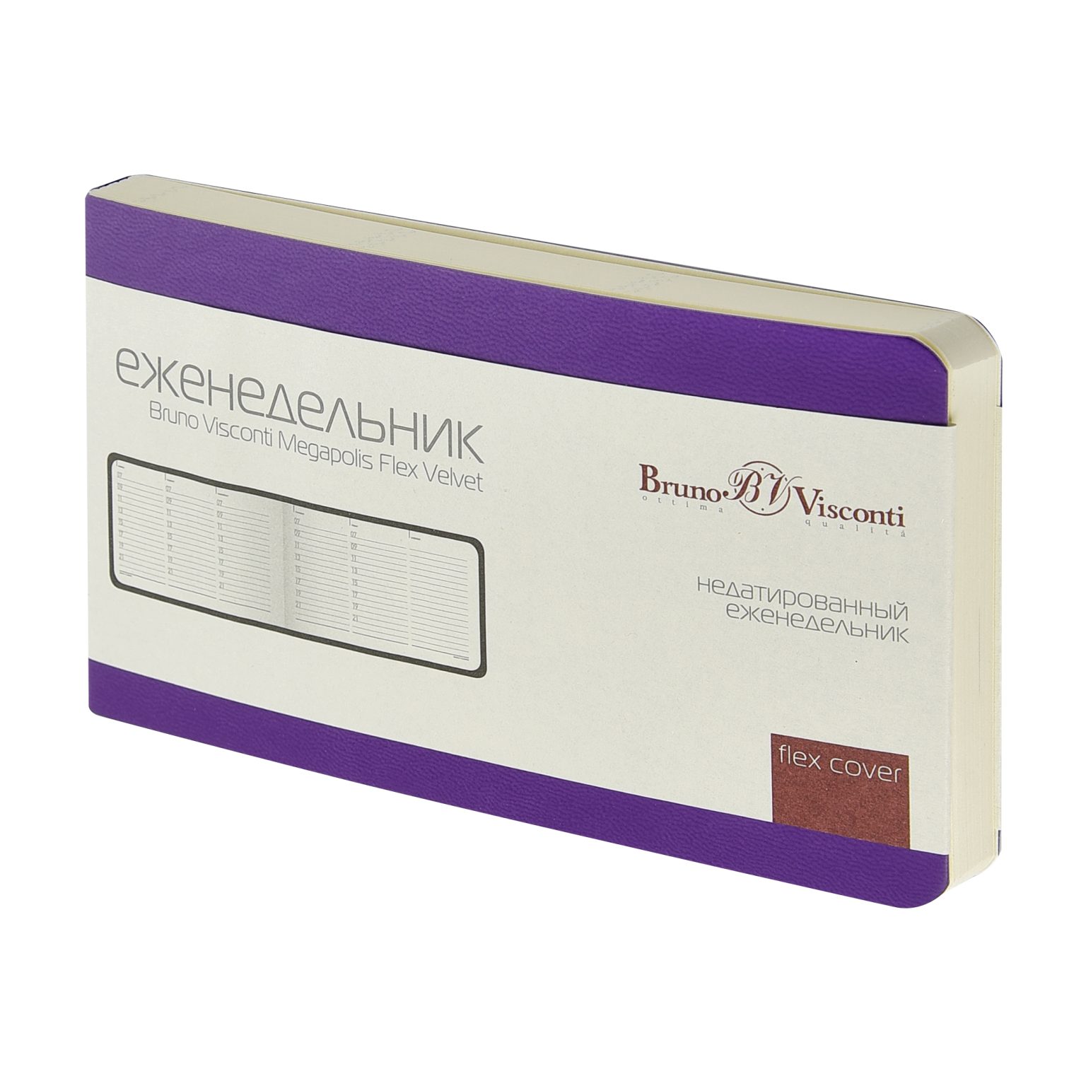 Недатированный еженедельник «MEGAPOLIS FLEX VELVET» от Bruno Visconti для планирования рабочего времени, ведения записей. Гибкая (flex) обложка изготовлена из искусственной кожи c покрытием Soft Touch. Внутренний блок произведен из бежевой бумаги плотностью 80 г/кв.м и содержит 80 листов в серую линейку. Благодаря компактному формату А6 ежедневник легко разместится в дамской сумочке, кармане пиджака. Еженедельник «MEGAPOLIS FLEX VELVET» — идеальное решение для динамичных деловых людей, которым важны мобильность, качество, комфорт.