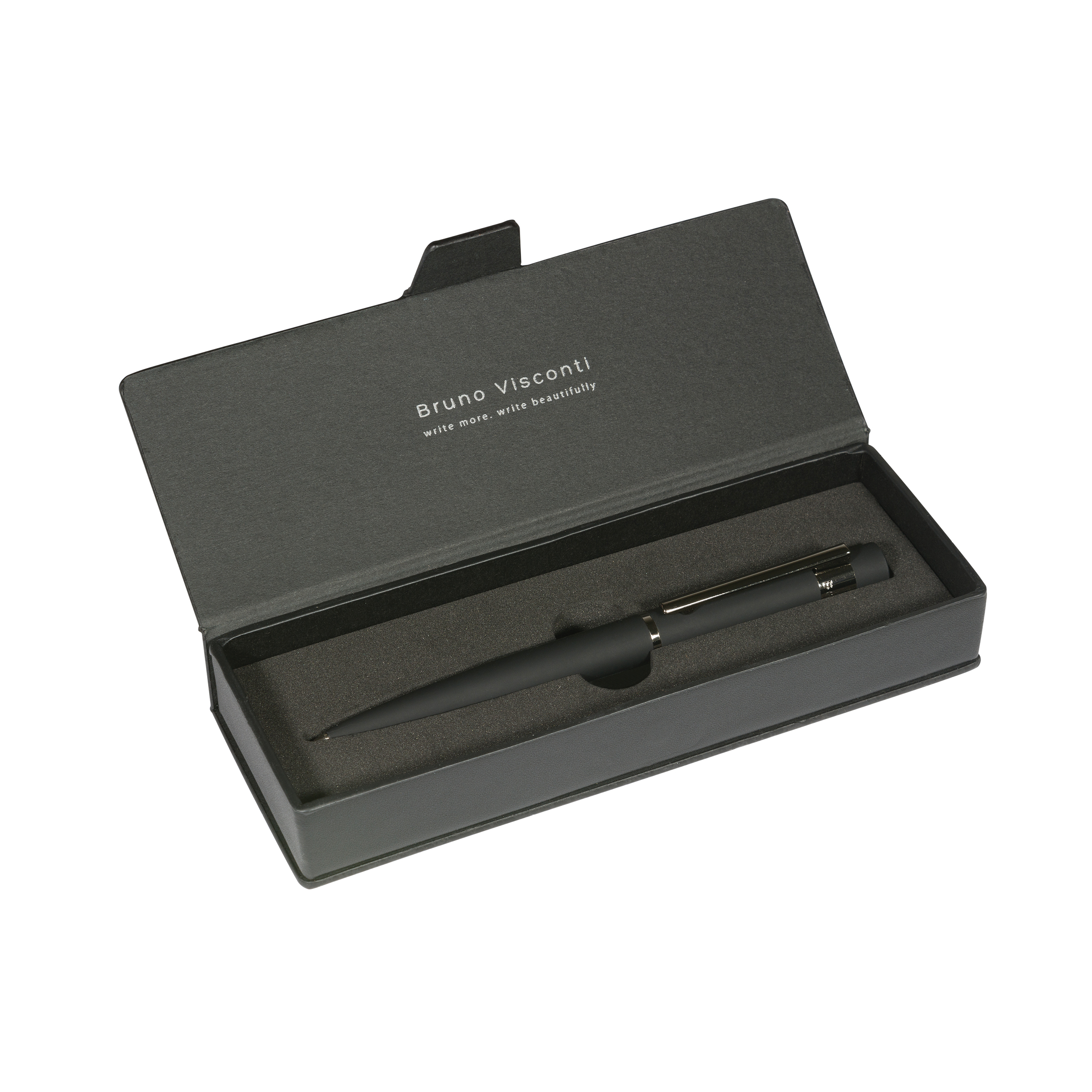 Шариковая ручка «Verona» отличается строгим, респектабельным и лаконичным дизайном. Модель выпускается в эргономичном округлом корпусе диаметром 12 мм. Материал корпуса – металл, дополненный приятным на ощупь покрытием soft-touch. Черный корпус дополнен серебристыми деталями, в том числе клип-зажимом из металла.Пулевидный пишущий узел проводит линии толщиной 1 мм и обеспечивает мягкое письмо на любом типе бумаги. Для заправки используются синие пигментные чернила DOKUMENTAL. В ручках предусмотрена возможность замены стержня, что позволяет продлить срок службы письменной принадлежности.