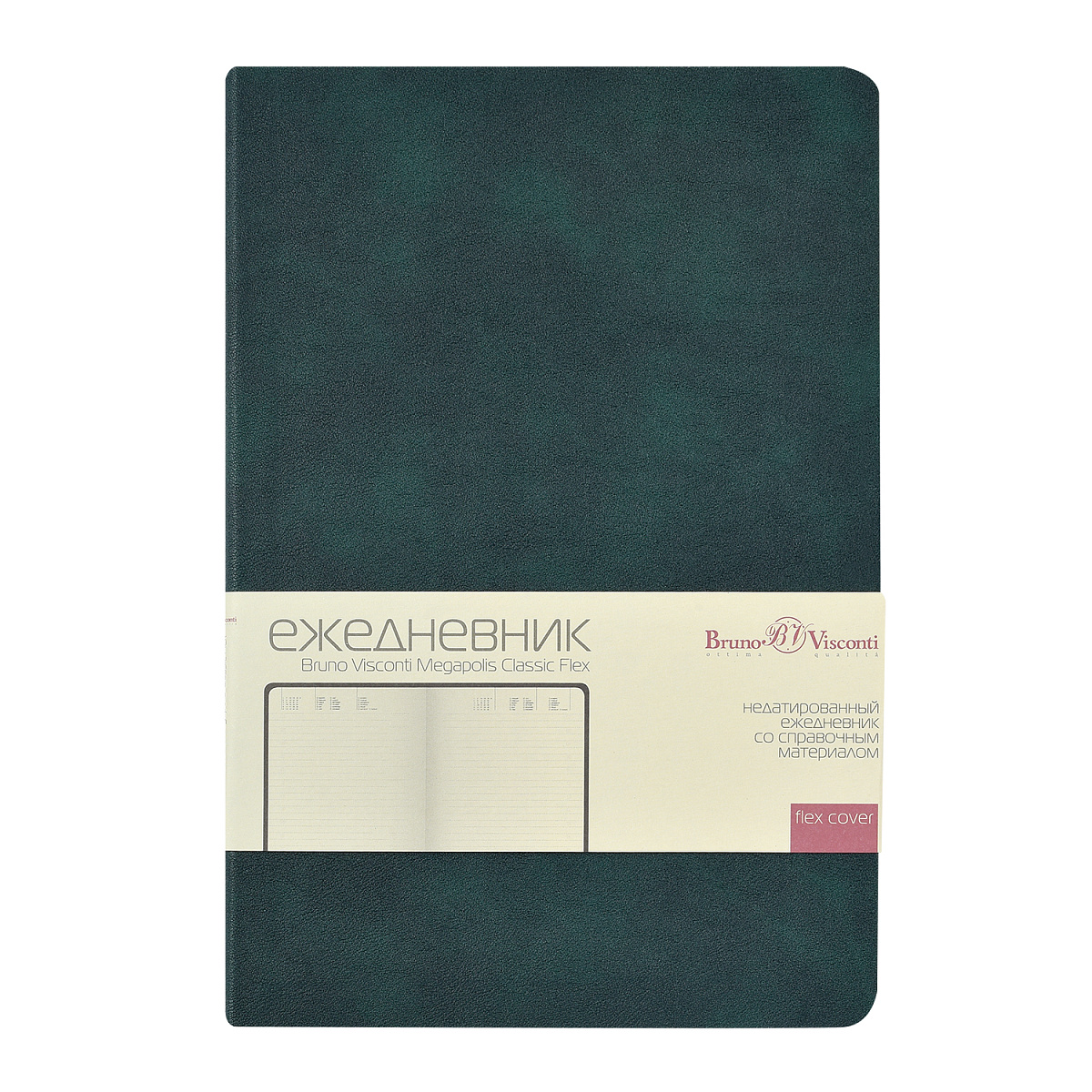Классическое воплощение минимализма: формат А5, гибкая обложка, скругленный угол блока и обложки, ровные, четкие линии, отсутствие декоративных элементов. Внутренний блок изготовлен из бежевой бумаги плотностью 70 г/кв.м и помимо раздела для планирования рабочего времени включает в себя 12 страниц справочной информации. Функциональность и эргономичность — это то, что отличает недатированный ежедневник Megapolis Classic Flex ТМ Bruno Visconti от всех других ежедневников.